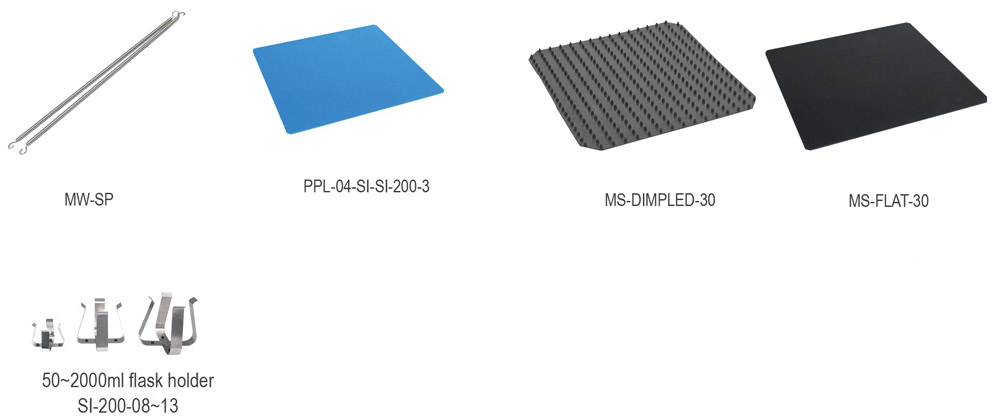 • Platform supports multiple accessories, including flask clamps and tube racks, to accommodate lab labware.